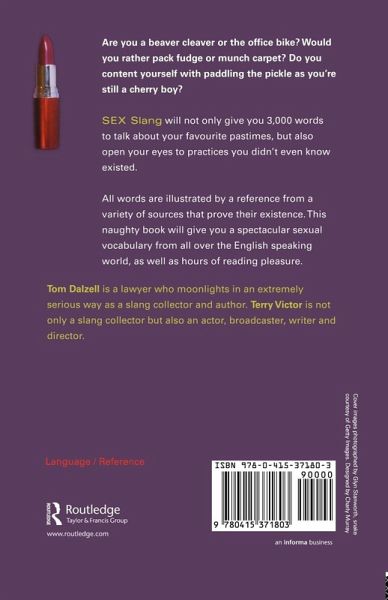 Sex Slang not only gives you 3,000 new words to talk about your favourite pastimes, it will open your eyes to practices you didn't even know existed. Infused with humour, it provides a spectacular sexual vocabulary from all over the English speaking world, as well as hours of reading pleasure.