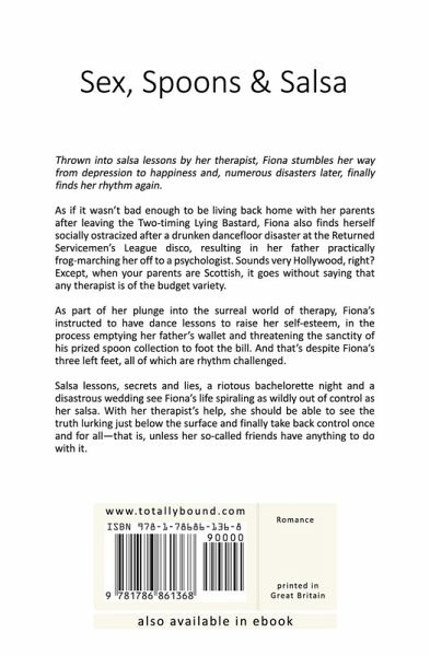 Thrown into salsa lessons by her therapist, Fiona stumbles her way from depression to happiness and, numerous disasters later, finally finds her rhythm again. As if it wasn’t bad enough to be living back home with her parents after leaving the Two-timing Lying Bastard, Fiona also finds herself socially ostracized after a drunken dancefloor disaster at the Returned Servicemen’s League disco, resulting in her father practically frog-marching her off to a psychologist. Sounds very Hollywood, right? Except, when your parents are Scottish, it goes without saying that any therapist is of the budget variety. As part of her plunge into the surreal world of therapy, Fiona’s instructed to have dance lessons to raise her self-esteem, in the process emptying her father’s wallet and threatening the sanctity of his prized spoon collection to foot the bill. And that’s despite Fiona’s three left feet, all of which are rhythm challenged. Salsa lessons, secrets and lies, a riotous bachelorette night and a disastrous wedding see Fiona’s life spiraling as wildly out of control as her salsa. With her therapist’s help, she should be able to see the truth lurking just below the surface and finally take back control once and for all—that is, unless her so-called friends have anything to do with it.