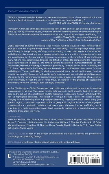 This book targets sex trafficking within every geographic region and it provides a general profile of the geographic regions in terms of demographic characteristics and political conditions that may support the growth of sex trafficking. It is written on a basic information-supply-level to provide readers with a foundation on human trafficking throughout the world.