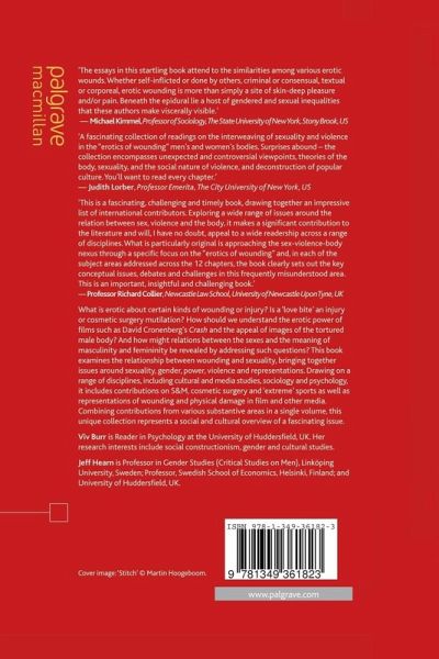 'Sex and violence are each moments of transgression, trespassing across boundaries. The essays in this startling book, so ably collected by Burr and Hearn, attend to the similarities among various erotic wounds. Whether self-inflicted or done by others, criminal or consensual, textual or corporeal, erotic wounding is more than simply a site of skin-deep pleasure and/or pain. Beneath the epidural lie a host of gendered and sexual inequalities that many of these authors make viscerally visible.' - Michael Kimmel, Professor of Sociology, SUNY Stony Brook, US and author of The Gender of Desire