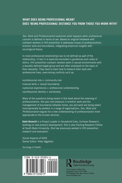 Sex, Work and Professionalism examines what happens when professional concern is defined in terms of sex. Based on original fieldwork with outreach workers in HIV prevention it addresses issues of professionalism, emotion work and boundaries, integrating empirical insights with sociological theory. In most professional relationships sex is not defined as part of the relationship, in fact it is explicitly excluded in guidelines and codes of ethics. HIV prevention outreach workers work in sexual environments with a sexually defined target group and are often employed on the basis of their sexuality. They have to learn how to balance their work and professional lives, overcoming conflicts such as: * professional role V community role * sexual skills V sexual boundaries * personal experiences V professional understanding * professional identity V worldviews. Many of the questions being raised in this book about the meaning of professionalism, the pain and pleasure in emotion work and the management of boundaries between home, sex and work are being asked more generally by workers in a range of organisations. Sex, Work and Professionalism argues for a new understanding of professionalism more appropriate to the human services.