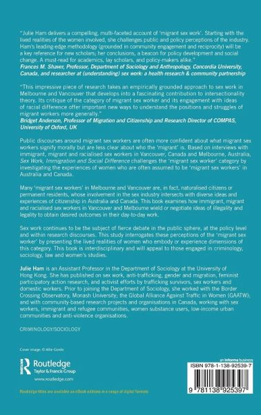 The book offers a unique account of women's experiences, attitudes and negotiations of work, immigration and citizenship in the sex work industry and challenges social myths about the risks and vulnerabilities of 'migrant sex workers'.