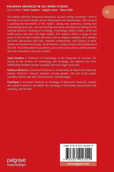 This edited collection showcases innovative, up and coming researchers' work in the field of sex work studies across labour/work and relationships. This research is pushing the boundaries of the subject, asking new questions, carving new methodological terrain, and contributing new ideas and empirical findings to the existing literature. Drawing on sociology, criminology, media studies, social and health policy, law and socio-legal studies, the chapters reflect a range of new topics in the sex work studies literature such as religious readings, porn workers and their interactions with fans; romantic relationships, and humour at work. Studies are drawn from Europe, South America, Turkey, Ireland, New Zealand and the USA. This book speaks to academics across the social sciences and humanities who are interested in sex work studies.