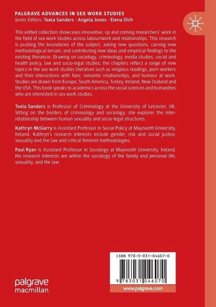 This edited collection showcases innovative, up and coming researchers' work in the field of sex work studies across labour/work and relationships. This research is pushing the boundaries of the subject, asking new questions, carving new methodological terrain, and contributing new ideas and empirical findings to the existing literature. Drawing on sociology, criminology, media studies, social and health policy, law and socio-legal studies, the chapters reflect a range of new topics in the sex work studies literature such as religious readings, porn workers and their interactions with fans; romantic relationships, and humour at work. Studies are drawn from Europe, South America, Turkey, Ireland, New Zealand and the USA. This book speaks to academics across the social sciences and humanities who are interested in sex work studies.