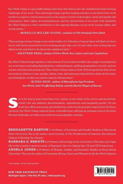 Bernadette Barton (Editor) Bernadette Barton is Professor of Sociology and Gender Studies at Morehead State University. She is the author of The Pornification of America: How Raunch Culture is Ruining Our Society, Stripped: More Stories from Exotic Dancers, and Pray the Gay Away: The Extraordinary Lives of Bible Belt Gays . Barbara G. Brents (Editor) Barbara G. Brents is Professor of Sociology at the University of Nevada, Las Vegas. She is the co-author of Paying for Sex in a Digital Age: US and UK Perspectives and The State of Sex: Tourism, Sex and Sin in the New American Heartland. Angela Jones (Editor) Angela Jones is Professor of Women, Gender, and Sexuality Studies at Stony Brook University. They are the author of Camming: Money, Power, and Pleasure in the Sex Work Industry and co-author of Black Lives Matter: A Reference Book.