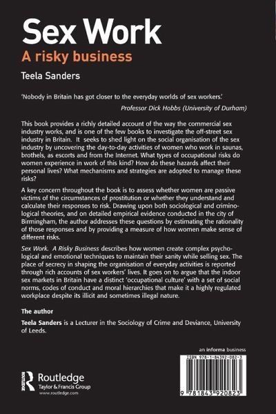 This is a richly detailed account of the way the sex industry works, and one of the few empirical studies that investigates the off street industry in Britain. The book seeks to advance a greater knowledge of the social organisation of the sex industry by uncovering the day-to-day activities of women involved in the indoor markets. What types of occupational risks do women experience in work of this kind? How do these hazards affect their personal lives? A key concern throughout the book is to assess whether women are passive victims of the circumstances of prostitution or whether they understand and calculate their responses to danger. Drawing upon both sociological and criminological theories, and on detailed research in the city of Birmingham, the author addresses these questions by estimating the rationality of those responses and by providing a measure of how women make sense of different risks. Sex Work: a risky business describes how women create complex psychological and emotional techniques to maintain their sanity while selling sex, and goes on to argue that the indoor sex markets in Britain have a distinct 'occupational culture' with a set of social norms, code of conduct and moral hierarchies that make it a high regulated workplace despite its illicit and sometimes illegal nature.