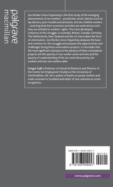 This is the first study of the emerging phenomenon of sex workers, asserting that they are entitled to workers' rights. Drawing on examples from Australia, Britain, Canada, Germany, The Netherlands, New Zealand and the USA the book analyzes the contexts for this struggle and the opportunities and challenges facing these unionization projects.