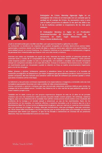 Sexo en el templo de Dios: 15 maneras fáciles de comprender, identificar y superar la inmoralidad sexual y las trampas emocionales en su vida se escribió como un libro práctico de "cómo hacerlo" para ayudarlo a terminar con el enredo sexual y emocional para siempre. ¿Cuál es mi motivación para escribir este libro? ¿ Por qué querrías leerlo y aplicarlo a tu vida? La motivación : La incidencia de los creyentes atrapados en enredos destructivos parece haber aumentado y sigue siendo una fuente de dolor y angustia para solteros y familias por igual. La inmoralidad sexual no conoce límites. Su influencia insidiosa se ha extendido a instituciones y hogares de personas bien intencionadas que buscan vivir vidas morales y cristianas. Internet con todas sus ventajas no ayuda en absoluto. Internet ha hecho posible el consumo privado de material ilícito a través de la computadora de su casa o dispositivo móvil (teléfono). Tanto jóvenes como adultos pueden acceder no solo a la pornografía, sino también a entablar una relación emocional virtual con desconocidos del otro lado del mundo. Incluso si el contacto físico nunca ocurre, el daño a un matrimonio puede ser devastador cuando la relación en línea se vuelve atractiva para uno de los cónyuges. Los niños, jóvenes y viejos, misioneros, pastores o miembros laicos no son inmunes a la invasión de contenido pornográfico en dispositivos que dejan imágenes que generalmente permanecen hasta el punto de quedar atrapados. Me han llamado para asesorar sobre los tipos de software que podrían ayudar a evitar que estos invasores reciban más víctimas. La televisión y las películas continúan exponiendo a los espectadores a imágenes y contenidos cada vez más tentadores que nos pueden llevar a estilos de vida comprometedores. Hemos contratado a autores cristianos que han probado soluciones prácticas de las Escrituras para evitar las trampas de la inmoralidad sexual. También hay historias de la vida real de las que podemos aprender al trazar nuestro propio curso. He también se dio cuenta de mis propias experiencias después de más de 25 años de mi camino cristiano que pocas veces nos enseñan sobre el sexo UAL importa desde nuestro púlpito. Sin embargo, nuestros hogares, que son la base de la sociedad, han sufrido consecuencias incalculables como resultado de la trampa y el enredo sexual y emocional, ya sea en matrimonios, matrimonios externos, en las escuelas, en nuestras oficinas o en nuestros mercados y en el entorno que da a luz. Mee Too Movements, Luchas de desigualdad de género, Sexo por marcas en nuestras universidades, Sexo por promociones en el lugar de trabajo, Sexo por transferencia, Sexo por privilegios, Sexo por contratos, etc. Estos acontecimientos sorprenden a muchos creyentes que están mal preparados para manejar las enormes tentaciones que tienen que soportar, lo que los ha llevado a convertirse en víctimas de las presiones en el lugar de trabajo. Hay una necesidad de tutoría sobre este tema.