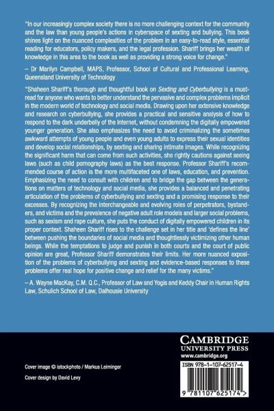 Directed at policy makers, legislators, educators, parents, the legal community, and anyone concerned about current public policy responses to sexting and cyberbullying, this book examines the lines between online joking and legal consequences. It offers an analysis of reactive versus preventive legal and educational responses to these issues using evidence-based research with digitally empowered kids. Shaheen Shariff highlights the influence of popular and 'rape' culture on the behavior of adolescents who establish sexual identities and social relationships through sexting. She argues that we need to move away from criminalizing children and toward engaging them in the policy development process, and she observes that important lessons can be learned from constitutional and human rights frameworks. She also draws attention to the value of children's literature in helping the legal community better understand children's moral development and in helping children clarify the lines between harmless jokes and harmful postings that could land them in jail.