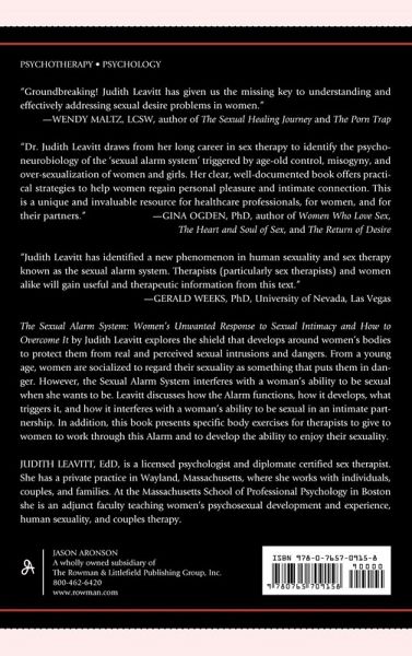 The Sexual Alarm System: Women's Unwanted Response to Sexual Intimacy and How to Overcome It by Judith Leavitt explores the shield that develops around many women's bodies to protect them from real and perceived sexual intrusions and dangers. Because the Sexual Alarm System interferes with a woman's ability to be sexual, this book presents specific body exercises for therapists to give to women to work through this Alarm and to develop the ability to enjoy their sexuality.