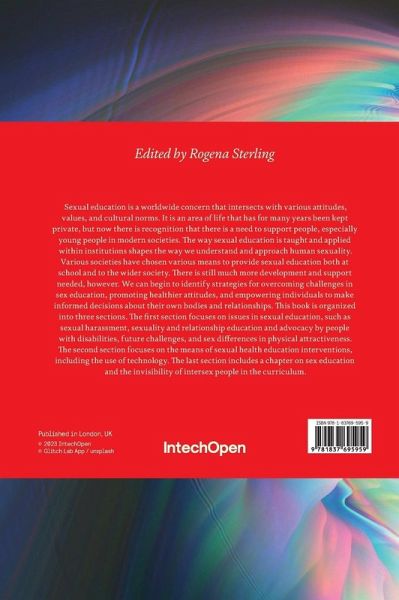 Sexual education is a worldwide concern that intersects with various attitudes, values, and cultural norms. It is an area of life that has for many years been kept private, but now there is recognition that there is a need to support people, especially young people in modern societies. The way sexual education is taught and applied within institutions shapes the way we understand and approach human sexuality. Various societies have chosen various means to provide sexual education both at school and to the wider society. There is still much more development and support needed, however. We can begin to identify strategies for overcoming challenges in sex education, promoting healthier attitudes, and empowering individuals to make informed decisions about their own bodies and relationships. This book is organized into three sections. The first section focuses on issues in sexual education, such as sexual harassment, sexuality and relationship education and advocacy by people with disabilities, future challenges, and sex differences in physical attractiveness. The second section focuses on the means of sexual health education interventions, including the use of technology. The last section includes a chapter on sex education and the invisibility of intersex people in the curriculum.