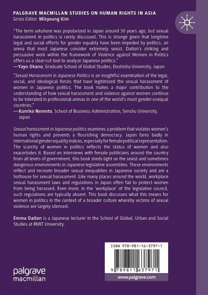 Sexual harassment in Japanese politics examines a problem that violates women's human rights and prevents a flourishing democracy. Japan fares badly in international gender equality indices, especially for female political representation. The scarcity of women in politics reflects the status of women and also exacerbates it. Based on interviews with female politicians around the country from all levels of government, this book sheds light on the sexist and sometimes dangerous environments in Japanese legislative assemblies. These environments reflect and recreate broader sexual inequalities in Japanese society and are a hothouse for sexual harassment. Like many places around the world, workplace sexual harassment laws and regulations in Japan often fail to protect women from being harassed. Even more, in the 'workplace' of the legislative council, such regulations are typically absent. This book discusses what this means for women in politics in the context of a broader culture whereby victims of sexual violence are largely silenced.