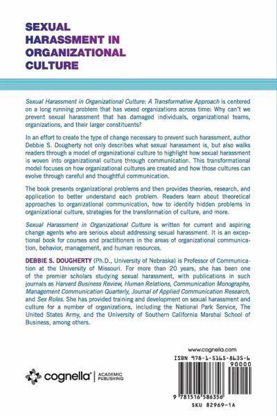 "Sexual Harassment in Organizational Culture: A Transformative Approach is centered on a long running problem that has vexed organizations across time: Why can't we prevent sexual harassment that has damaged individuals, organizational teams, organizations, and their larger consituents? In an effort to create the type of change necessary to prevent such harassment, author Debbie S. Dougherty not only describes what sexual harassment is, but also walks readers through a model of organizational culture to highlight how sexual harassment is woven into organizational culture through communication. This transformational model focuses on how organizational cultures are created and how those cultures can evolve through careful and thoughtful communication. The book presents organizational problems and then provides theories, research, and application to better understand each problem. Readers learn about theoretical approaches to organizational communication, how to identify hidden problems in organizational culture, strategies for the transformation of culture, and more. Sexual Harassment in Organizational Culture is written for current and aspiring change agents who are serious about addressing sexual harassment. It is an exceptional book for courses and practitioners in the ares of organizational communication, behavior management, and human resources"--Back cover