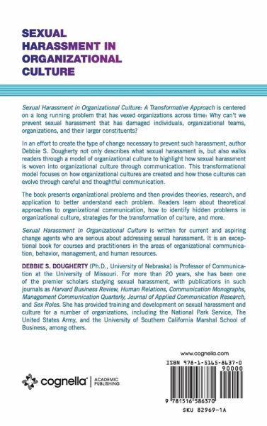 "Sexual Harassment in Organizational Culture: A Transformative Approach is centered on a long running problem that has vexed organizations across time: Why can't we prevent sexual harassment that has damaged individuals, organizational teams, organizations, and their larger consituents? In an effort to create the type of change necessary to prevent such harassment, author Debbie S. Dougherty not only describes what sexual harassment is, but also walks readers through a model of organizational culture to highlight how sexual harassment is woven into organizational culture through communication. This transformational model focuses on how organizational cultures are created and how those cultures can evolve through careful and thoughtful communication. The book presents organizational problems and then provides theories, research, and application to better understand each problem. Readers learn about theoretical approaches to organizational communication, how to identify hidden problems in organizational culture, strategies for the transformation of culture, and more. Sexual Harassment in Organizational Culture is written for current and aspiring change agents who are serious about addressing sexual harassment. It is an exceptional book for courses and practitioners in the ares of organizational communication, behavior management, and human resources"--Back cover