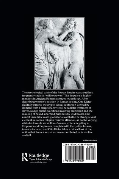 First published in 2001. The psychological basis of the Roman Empire was a ruthless, frequently sadistic 'will to power'. This impulse is highly manifest in Ancient Roman attitudes towards sex. After describing women's position in Roman society, Keifer skilfully surveys the crypto-sexual satisfaction derived by Romans from a range of activities.