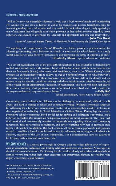 In this book, Dr. Wilson Kenney, a clinical psychologist with over 15 years experience treating and assessing kids with concerning sexual behavior, lays out a comprehensive school/community based model for identifying and addressing concerning sexual behavior in children that is based upon best-practice models for threat assessment.