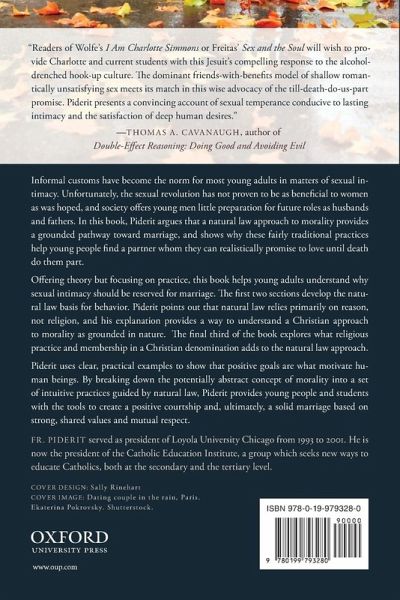 Informal customs have become the norm for most young adults in matters of sexual intimacy. Unfortunately, the sexual revolution has not proven to be as beneficial to women as was hoped, and society offers young men little preparation for future roles as husbands and fathers. In this book, Father Piderit argues that a natural law approach to morality provides a grounded pathway toward marriage, and shows why these fairly traditional practices help young people find a partner whom they can realistically promise to love until death do them part.