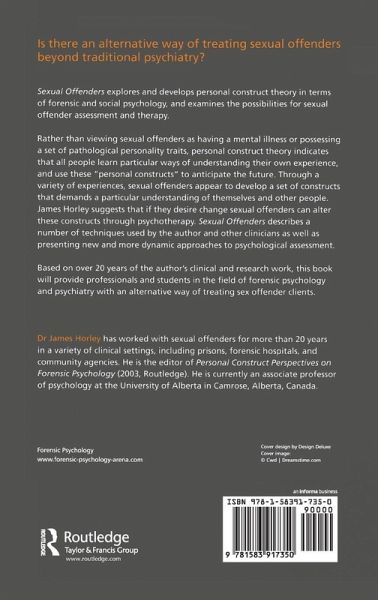 Is there an alternative way of treating sexual offenders beyond traditional psychiatry? Sexual Offenders explores and develops personal construct theory in terms of forensic and social psychology, and examines the possibilities for sexual offender assessment and therapy. Rather than viewing sexual offenders as having a mental illness or possessing a set of pathological personality traits, personal construct theory indicates that all people learn particular ways of understanding their own experience, and use these 'personal constructs' to anticipate the future. Through a variety of experiences, sexual offenders appear to develop a set of constructs that demands a particular understanding of themselves and other people. James Horley suggests that if they desire change sexual offenders can alter these constructs through psychotherapy. Sexual Offenders describes a number of techniques used by the author and other clinicians as well as presenting new and more dynamic approaches to psychological assessment. Based on over 20 years of the author's clinical and research work, this book will provide professionals and students in the field of forensic psychology and psychiatry with an alternative way of treating sex offender clients.