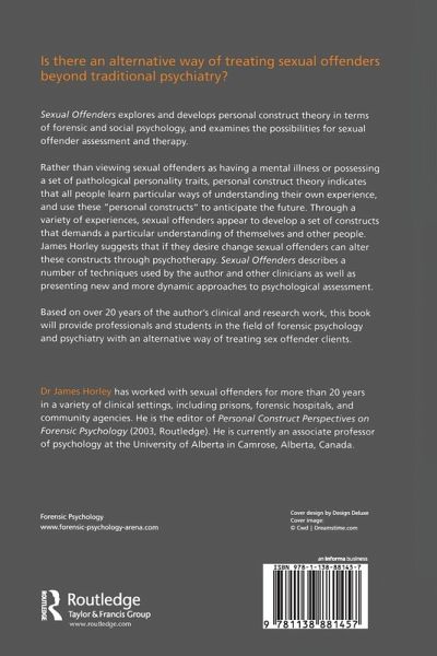 Is there an alternative way of treating sexual offenders beyond traditional psychiatry? Sexual Offenders explores and develops personal construct theory in terms of forensic and social psychology, and examines the possibilities for sexual offender assessment and therapy. Rather than viewing sexual offenders as having a mental illness or possessing a set of pathological personality traits, personal construct theory indicates that all people learn particular ways of understanding their own experience, and use these 'personal constructs' to anticipate the future. Through a variety of experiences, sexual offenders appear to develop a set of constructs that demands a particular understanding of themselves and other people. James Horley suggests that if they desire change sexual offenders can alter these constructs through psychotherapy. Sexual Offenders describes a number of techniques used by the author and other clinicians as well as presenting new and more dynamic approaches to psychological assessment. Based on over 20 years of the author's clinical and research work, this book will provide professionals and students in the field of forensic psychology and psychiatry with an alternative way of treating sex offender clients.