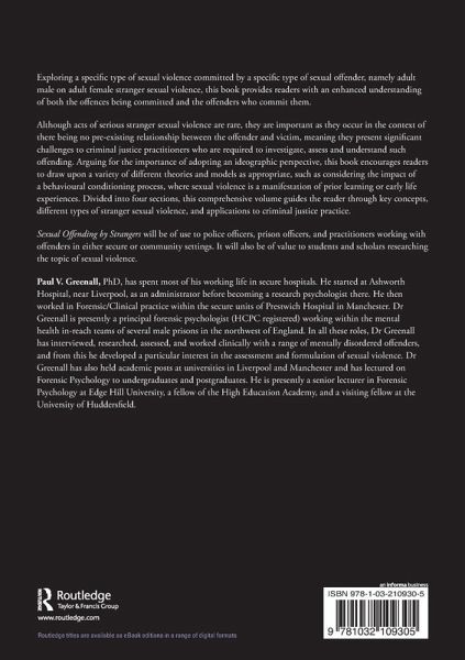 Sexual Offending by Strangers will be of use to police officers, prison officers, and practitioners working with offenders in either secure or community settings. It will also be of value to students and scholars researching the topic of sexual violence.