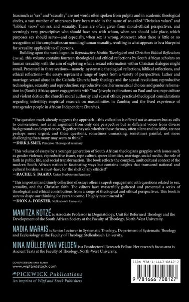 Inasmuch as "sex" and "sexuality" are not words often spoken from pulpits and in academic theological circles, a vast number of utterances have been made in the name of so-called "Christian values" and "biblical views" on sex and sexuality. These are often given from moral-ethical perspectives, and seemingly very prescriptive: who should have sex with whom, when sex should take place, which purposes sex should serve--and especially, when sex is wrong. Moreover, often there is little or no recognition of the complexities surrounding human sexuality, resulting in what appears to be a blueprint for sexuality, applicable to all persons. This volume contains fourteen theological and ethical reflections by South African scholars on human sexuality, with the aim of exploring what a sexual reformation within Christian dialogue might entail. Presented in three sections--namely, systematic theological reflections, biblical reflections, and ethical reflections--the essays represent a range of topics from a variety of perspectives: Luther and marriage; sexual abuse in the Catholic Church; body theology and the sexual revolution; reproductive technologies, sexuality and reproduction; reproductive loss; hermeneutical choices and gender reformation in (South) Africa; queer engagements with "bra" Joseph; explorations on Paul and sex; rape culture and violent deities; the church's moral authority and sexual ethics; practical-theological considerations regarding infertility; empirical research on masculinities in Zambia; and the lived experience of transgender people in African Independent Churches.