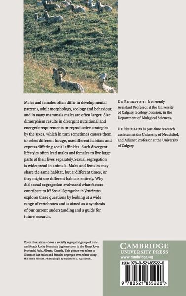 Originally published in 2006, Sexual Segregation in Vertebrates explores the reasons why this behaviour has evolved and what factors contribute to it.