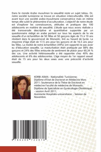 Dans le monde Arabo musulman la sexualité reste un sujet tabou. Or, notre société tunisienne se trouve en situation interculturelle. Elle est avant tout une société arabo-musulmane conservatrice mais en même temps elle subit le phénomène d'acculturation. L'objectif de notre étude est d'explorer les connaissances, attitudes et pratiques des 100 adolescents en matière de sexualité. L'étude que nous avons réalisée a été transversale descriptive et quantitative supportée par un questionnaire rédigé en arabe portant sur tous les aspects de la vie sexuelle d'un échantillon de 50 filles et 50 garçons âgés de 15 à 19 ans résidant dans le gouvernorat de Monastir, tiré au hasard de lycée. La moyenne d'âge était de 17,5 ans pour les garçons et de 16,5 ans pour les filles. La moitié de notre échantillon (49%) ont rapporté ne pas avoir eu d'éducation sexuelle. La masturbation était pratiquée par 88% des garçons et 24% des filles entourée de sentiment de plaisir pour 60,34 % des cas. Une activité hétérosexuelle a été rapportée chez 40% des adolescents et 6% des adolescentes. L'âge moyen du 1er rapport sexuel était de 15 ans pour les deux sexes avec une précocité d'activité sexuelle.