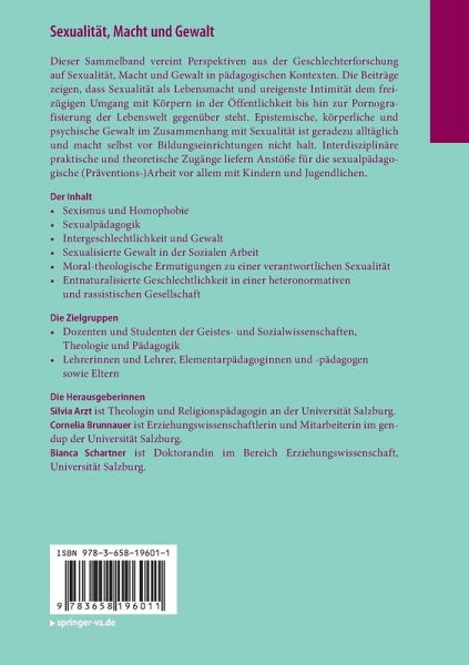 Sexismus und Homophobie.- Sexualpädagogik.- Intergeschlechtlichkeit und Gewalt.- Sexualisierte Gewalt in der Sozialen Arbeit.- Moral-theologische Ermutigungen zu einer verantwortlichen Sexualität.- Entnaturalisierte Geschlechtlichkeit in einer heteronormativen und rassistischen Gesellschaft.