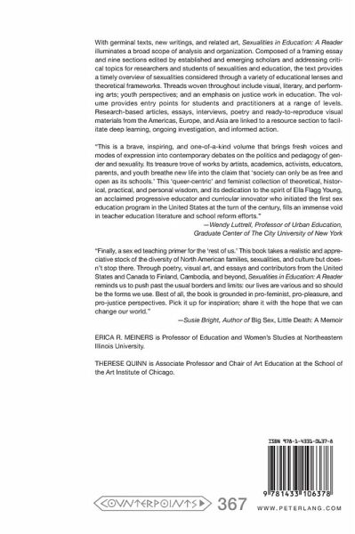 «This reader is a must-have for anyone interested in sexuality, education, and social justice. Therese Quinn and Erica Meiners have made a unique cross-genred collection of academic as well as political, literary texts and art, highlighting both contemporary and historical perspectives. At its heart is a sharp analysis of the neo-liberal framing of education and the self, informed by an intersectional and queer-feminist approach to the meanings of gender, sexuality, and strategies of change. It brings us closer to understanding the depth of what is at stake, and yet inspiration and hopes for change, reminding us of our predecessor's impossible missions and activists today continuing them.» (Janne Bromseth, Stockholm University)