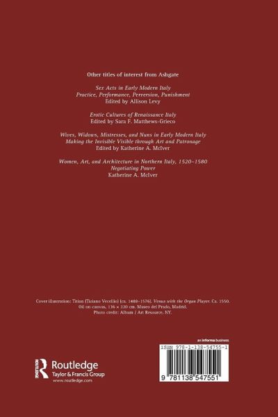 Contents: Introduction: playing with boundaries Melanie L. Marshall Linda L. Carroll and Katherine A. McIver. Part I Performing Sexuality: Visual pleasures sensual sounds: music morality and sexuality in paintings by Titian Katherine A. McIver; 'Galeotto fu la metafora': language and sex in Boccaccio's Decameron Catherine Baxter; 'Balla la mona e salta il babuino': performing obscenity in a musical dialogue Paul Schleuse. Part II The Erotics of Religion: Sexuality and depictions of the female saint in medieval Tuscany Catherine Lawless; Leonine lasciviousness and Luther Anthony M. Cummings; The Roman Church and sexuality: some notes on prelates and regular clergy in sixteenth-seventeenth-century Italian courts Flavio Rurale. Part III Images of Country Life Realistic and Artistic: Tradition and gender transgression: the iconography of the shepherd couple in Venetian pastoral landscape during the sixteenth century Christophe Brouard; '(El) ge sa bon laorare': female wealth male competition musical festivities and the Venetian patriciate in Ruzante's pavan Linda L. Carroll; 'Farò quel che mi piacerà ': fictional women in villotta voice resistance Melanie L. Marshall. Bibliography; Index.