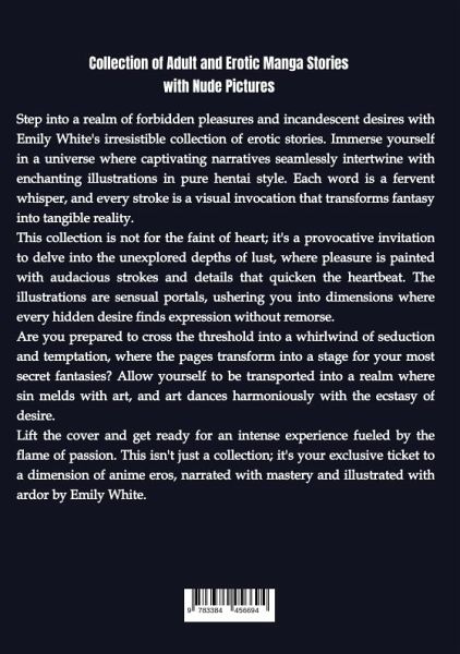 Indulge in an Unforgettable Journey of Passion and Temptation with Emily White's Erotic Masterpiece!Step into a captivating world where seduction knows no bounds in Emily White's latest collection of scintillating erotic stories, enriched with enchanting hentai illustrations. Immerse yourself in a universe where each word is a whispered promise, and every brushstroke is a visual enchantment that brings fantasies to life in pure hentai style.This collection is a daring invitation to explore the uncharted depths of desire, where pleasure unfolds with audacious strokes and details that will quicken your heartbeat. The carefully crafted hentai illustrations serve as sensuous portals, transporting you into dimensions where every hidden fantasy finds unabashed expression.What to Expect:- A Fusion of Literary Mastery and Sensual Artistry- Explicit and Alluring Hentai Illustrations- Stories That Explore the Boundaries of Lust and Fantasy- A Whirlwind of Seduction and TemptationThis isn'tjust a collection; it's your exclusive ticket to a dimension of hentai eros, meticulously narrated and ardently illustrated by Emily White. Lift the cover and prepare for an intense experience fueled by the flame of passion.Caution: This Collection is Not for the Faint of Heart. Are You Ready to Cross the Threshold?