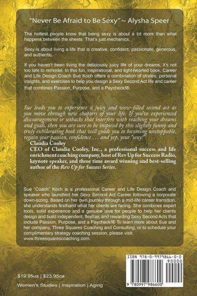 The hottest people know that being sexy is about a lot more than what happens between the sheets. That’s just mechanics. Sexy is about living a life that is creative, confident, passionate, generous, and authentic. If you haven’t been living the deliciously juicy life of your dreams, it’s not too late to remodel. In this fun, inspirational, and light-hearted book, Career and Life Design Coach Sue Koch offers a combination of stories, personal insights, and exercises to help you design a Sexy Second Act life and career that combines Passion, Purpose, and a Paycheck!®.