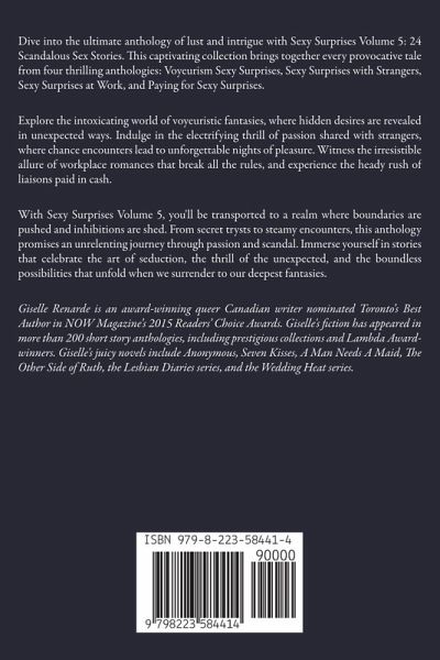 Dive into the ultimate anthology of lust and intrigue with Sexy Surprises Volume 5: 24 Scandalous Sex Stories. This captivating collection brings together every provocative tale from four thrilling anthologies: Voyeurism Sexy Surprises, Sexy Surprises with Strangers, Sexy Surprises at Work, and Paying for Sexy Surprises. Explore the intoxicating world of voyeuristic fantasies, where hidden desires are revealed in unexpected ways. Indulge in the electrifying thrill of passion shared with strangers, where chance encounters lead to unforgettable nights of pleasure. Witness the irresistible allure of workplace romances that break all the rules, and experience the heady rush of liaisons paid in cash. With Sexy Surprises Volume 5, you'll be transported to a realm where boundaries are pushed and inhibitions are shed. From secret trysts to steamy encounters, this anthology promises an unrelenting journey through passion and scandal. Immerse yourself in stories that celebrate the art of seduction, the thrill of the unexpected, and the boundless possibilities that unfold when we surrender to our deepest fantasies.