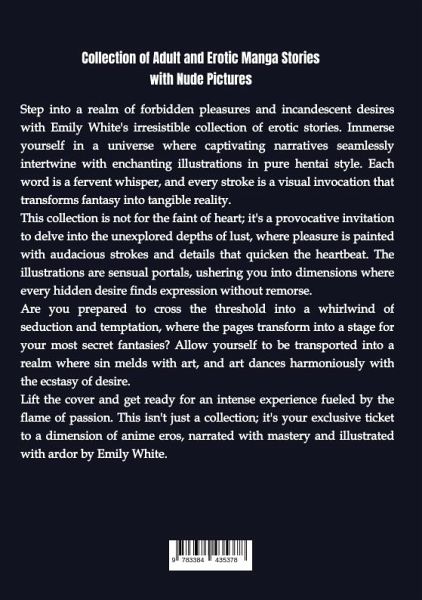 Indulge in an Unforgettable Journey of Passion and Temptation with Emily White's Erotic Masterpiece!Step into a captivating world where seduction knows no bounds in Emily White's latest collection of scintillating erotic stories, enriched with enchanting hentai illustrations. Immerse yourself in a universe where each word is a whispered promise, and every brushstroke is a visual enchantment that brings fantasies to life in pure hentai style.This collection is a daring invitation to explore the uncharted depths of desire, where pleasure unfolds with audacious strokes and details that will quicken your heartbeat. The carefully crafted hentai illustrations serve as sensuous portals, transporting you into dimensions where every hidden fantasy finds unabashed expression.What to Expect:- A Fusion of Literary Mastery and Sensual Artistry- Explicit and Alluring Hentai Illustrations- Stories That Explore the Boundaries of Lust and Fantasy- A Whirlwind of Seduction and TemptationThis isn'tjust a collection; it's your exclusive ticket to a dimension of hentai eros, meticulously narrated and ardently illustrated by Emily White. Lift the cover and prepare for an intense experience fueled by the flame of passion.Caution: This Collection is Not for the Faint of Heart. Are You Ready to Cross the Threshold?