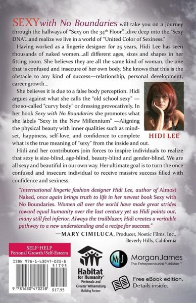 Hidi Lee asked the question, "What is sexy?" And America answered. In this compilation of personal stories comes the image of what is sexy---of what sexy really is, without the gimmicks, without the prejudice which we often believe inhibits society's mind. Sexy with No Boundaries demonstrates, on a personal level, how ?being sexy? no longer necessarily means having the curvy body or dressing provocatively. It's deeper than that, and encompasses much more than what the naked eye can see.