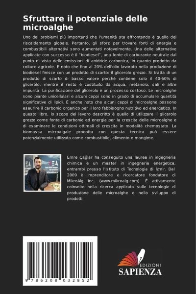 Uno dei problemi più importanti che l'umanità sta affrontando è quello del riscaldamento globale. Pertanto, gli sforzi per trovare fonti di energia e combustibili alternativi sono aumentati notevolmente. Una delle alternative applicate con successo è il ¿biodiesel¿, una fonte di carburante neutrale dal punto di vista delle emissioni di anidride carbonica, in quanto prodotto da colture agricole. È noto che fino al 20% dell'olio lavorato nella produzione di biodiesel finisce con un prodotto di scarto: il glicerolo grezzo. Si tratta di un prodotto di scarto di basso valore perché contiene solo il 40-60% di glicerolo, mentre il resto è costituito da acqua, metanolo, sali e altre impurità. La purificazione del glicerolo è un processo costoso. Le microalghe sono piante unicellulari e alcuni ceppi sono in grado di accumulare quantità significative di lipidi. È anche noto che alcuni ceppi di microalghe possono esaurire il carbonio organico per il loro fabbisogno nutritivo ed energetico. In questo libro, lo scopo del lavoro descritto è quello di utilizzare il glicerolo grezzo come fonte di carbonio ed energia per la crescita delle microalghe e di esaminare le condizioni ottimali di crescita in modalità chemostato. La biomassa microalgale prodotta con questa tecnica può essere potenzialmente utilizzata come combustibile, alimento e mangime.