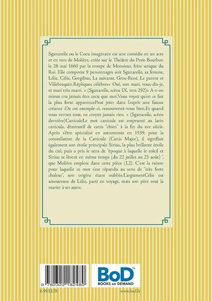 Sganarelle ou le Cocu imaginaire est une comédie en un acte et en vers de Molière, créée sur le Théâtre du Petit-Bourbon le 28 mai 1660 par la troupe de Monsieur, frère unique du Roi. Elle comporte 9 personnages soit Sganarelle, sa femme, Lélie, Célie, Gorgibus, La suivante, Gros-René, Le parent et Villebrequin. Répliques célèbres« Oui, son mari, vous-dis-je, et mari très marri. » (Sganarelle, scène IX, vers 292)« A-t-on mieux cru jamais être cocu que moi. Vous voyez qu'en ce fait la plus forte apparence Peut jeter dans l'esprit une fausse créance :De cet exemple-ci, ressouvenez-vous bien,Et quand vous verriez tout, ne croyez jamais rien. » (Sganarelle, scène dernière)