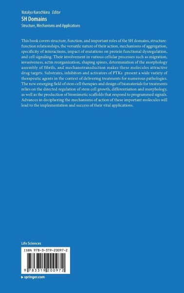 This book covers structure, function, and important roles of the SH domains, structure-function relationships, the versatile nature of their action, mechanisms of aggregation, specificity of interactions, impact of mutations on protein functional dysregulation, and cell signaling. Their involvement in various cellular processes such as migration, invasiveness, actin reorganization, shaping spines, determination of the morphology assembly of fibrils, and mechanotransduction makes these molecules attractive drug targets. Substrates, inhibitors and activators of PTKs present a wide variety of therapeutic agents in the context of delivering treatments for numerous pathologies. The new emerging field of stem cell therapies and design of biomaterials for treatments relies on the directed regulation of stem cell growth, differentiation and morphology, as well as the production of biomimetic scaffolds that respond to programmed signals. Advances in deciphering the mechanisms of action ofthese important molecules will lead to the implementation and success of their vital applications.