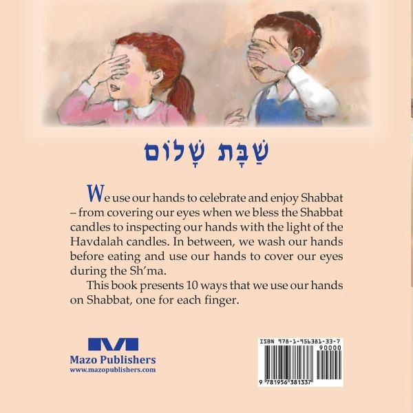 We use our hands to celebrate and enjoy Shabbat - from covering our eyes when we bless the Shabbat candles to inspecting our hands with the light of the Havdalah candles. In between, we wash our hands before eating and use our hands to cover our eyes during the Sh'ma. Shabbat Hands presents 10 ways that we use our hands on Shabbat, one for each finger. - Shabbat Shalom. Easy reading for young children.