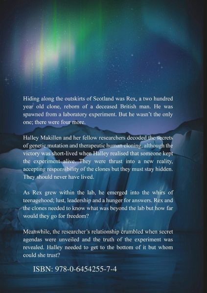 Hiding along the outskirts of Scotland was Rex, a two hundred year old clone, reborn of a deceased British man. He was spawned from a laboratory experiment. But he wasn't the only one; there were four more. Halley Makillen and her fellow researchers decoded the secrets of genetic mutation and therapeutic human cloning, although the victory was short-lived when Halley realised someone kept the experiment alive. They were thrust into a new reality, accepting responsibility of the clones but they must stay hidden. They should never have lived. As Rex grew within the lab, he emerged into the whirs of teenagehood; lust, leadership and a hunger for answers. Rex and the clones needed to know what was beyong the lab but how far would they go for freedom? Meanwhile, the researcher's relationship crumbled when secret agendas were unveiled and the truth of the experiment was revealed. Halley needed to get to the bottom of it but whom could she trust?