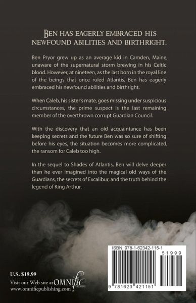 Ben Pryor grew up as an average kid in Camden, Maine, unaware of the supernatural storm brewing in his Celtic blood. However, at nineteen, as the last born in the royal line of beings that once ruled Atlantis, Ben has eagerly embraced his newfound abilities and birthright. When Caleb, his sister's mate, goes missing under suspicious circumstances, the prime suspect is the last remaining member of the overthrown, corrupt Guardian Council. With the discovery that an old acquaintance has been keeping secrets, and the future Ben was so sure of shifting before his eyes, the situation becomes more complicated and the ransom for Caleb too high. In the sequel to Shades of Atlantis, Ben will delve deeper than he ever imagined into the old, magical ways of the Guardians, the secrets of Excalibur, and the truth behind the legend of King Arthur. What exactly did the Council hide beneath the citadel of Camelot? And can it help get Caleb back without putting the world in danger?