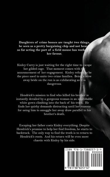 Daughters of crime bosses are taught two things, be seen as a pretty bargaining chip and not heard; so far acting the part of a field mouse has worked in her favour. Kinley Curry is just waiting for the right time to escape her gilded cage. That moment comes with the announcement of her engagement. Kinley refuses to be the piece used to unite two crime families. Being a stow away bride on the run is as exhilarating as it is dangerous. Hendrick's mission to find who killed his brother is instantly derailed by a gorgeous woman in an improbable white gown climbing into the back of his truck. He finds her quirky demands distracting until her reasons for using him to smuggle her away draw parallel to his brother's death. Escaping her father costs Kinley everything. Despite Hendrick's promise to help her find freedom, he starts to backtrack. The only way to find the truth is to return to Hendrick's roots. And his return will be even more chaotic with Kinley by his side.