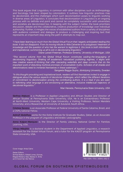 This book argues that Linguistics has been shaped by colonization. It outlines how linguistic practices may be decolonized and the challenges which this poses to linguists. It concludes that decolonization in Linguistics is a process with no definite end point and cannot be completely successful until societies are decolonized too.