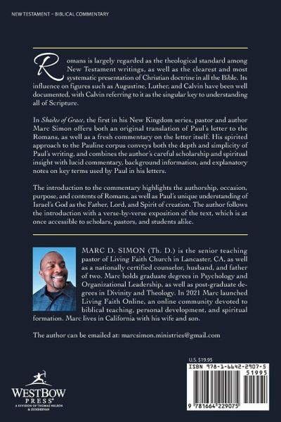 Romans is largely regarded as the theological standard among New Testament writings, as well as the clearest and most systematic presentation of Christian doctrine in all the Bible. Its influence on figures such as Augustine, Luther, and Calvin have been well documented, with Calvin referring to it as the singular key to understanding all of Scripture. In Shades of Grace, the first in his New Kingdom series, pastor and author Marc Simon offers both an original translation of Paul's letter to the Romans, as well as a fresh commentary on the letter itself. His spirited approach to the Pauline corpus conveys both the depth and simplicity of Paul's writing, and combines the author's careful scholarship and spiritual insight with lucid commentary, background information, and explanatory notes on key terms used by Paul in his letters. The introduction to the commentary highlights the authorship, occasion, purpose, and contents of Romans, as well as Paul's unique understanding of Israel's God as the Father, Lord, and Spirit of creation. The author follows the introduction with a verse-by-verse exposition of the text, which is at once accessible to scholars, pastors, and students alike.