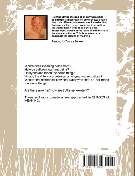 Where does meaning come from? How do children learn meaning? Do synonyms mean the same thing? What's the difference between antonyms and negations? What's the difference between synonyms that do not mean the same thing? Are there axioms? How are truths self-evident? These and more questions are approached in SHADES of MEANING.
