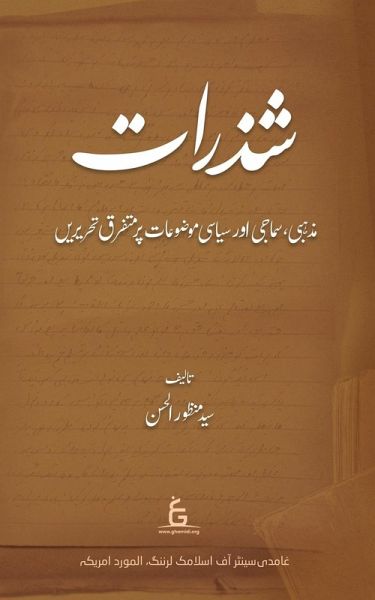 "Shadhar¿t" is a collection of the author's short writings. These pieces were published over the years as editorial notes in the monthly magazine Ishraq. Their content primarily consists of religious, social, and political discussions, drawing insights from the thoughts and perspectives of the esteemed Islamic scholar Javed Ahmed Ghamidi. The writings have been arranged into sections based on their style and subject.D¿n wa D¿nish includes essays that are purely based on religious reasoning. I¿l¿¿ wa Däwat comprises admonitory writings focused on individual reform. T¿r¿kh wa Siy¿sat contains articles analyzing national and communal issues. ¿¿l¿t wa W¿qi¿¿t documents reflections from the author's experiences during his missionary travels. Tadhkirah wa Tab¿irah is a compilation of selected writings related to obituaries (wafiy¿t) and book reviews. These writings were composed aiming to call people towards religion. Their primary purpose is to encourage individuals to benefit from the guidance of Islam in both their personal and collective lives and to integrate it into their knowledge and practice. The book includes more than 50 essays, some of the notable ones being:Does Islam Favor Democracy or Autocracy? The Path to Overcoming Extremism Eastern Civilization Taql¿d and Ijtih¿d Interpreting Islam in the Modern Era Friendship with Jews and Christians Däwah: The Only Path to Revolution The Role of Religious Leadership in Nation-Building The Struggles of Sayyid A¿mad Shah¿d and Sir Sayyid A¿mad Kh¿n The New York Tragedy The Real Motive behind Military Rule 23 Objections Video Series Compiled into a Book Ishraq America: A Revival of Our Missionary Tradition Writing, Compilation, and Publishing: A Proposed Strategy