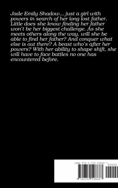 Jade Emily Shadow, a girl who has lost her father in the midst of her everyday life. She joins the military in hopes of finding her long lost father, however a cave a terrible cave swallows her up giving her strange powers. She uses these powers only for good to fight off anything that comes her way and protect those she loves. Little does she know, once the Shadow Hawk's identity is revealed, another beast lurks. Can she save the world from this monstrous beast? Can Jade, a shapeshifter and master of lightning, defeat a creature bigger than her?