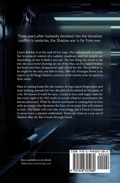 Three years after the human race devolved into the biggest, bloodiest conflict it has seen in centuries, the war may be over, but only for some. Laura Belden is at the end of her rope. Her community is under the tyrannical control of a sadistic madman, and her people are depending on her to find a way out. The last thing she needs is the boy she once loved showing up out of the blue, as if he hadn't broken her heart and then disappeared right out of her life. The problem is, he might be the only one able to help. After all, Finnegan Rowe is an expert on all things Shadow, courtesy of the twenty years he spent in their ranks. Finn is coming home for one reason: to beg Laura's forgiveness and start making amends for two decades of bloodshed in the name of a lie. He knows it won't be easy-Laura is hurt and angry, and she has every right to be. He's ready to accept whatever punishment she deems necessary. What he doesn't anticipate is coming face to face with an enemy who threatens the lives of everyone who still matters to him. The battle will cost him everything, but a Hawk is trained to never leave a mission unfinished. Turns out, there is a way out of Shadow after all. But it leads through blood...