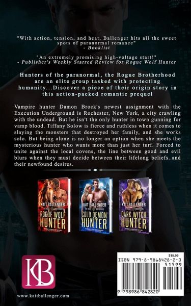 A sexy paranormal romance like you've never seen before! - Perfect for fans of Supernatural! Vampire hunter Damon Brock's newest assignment with the Execution Underground is Rochester, New York, a city crawling with the undead. But he isn't the only hunter in town gunning for vamp blood. Tiffany Solow is fierce and ruthless when it comes to slaying the monsters that destroyed her family, and she works solo. But being alone is no longer an option when she meets the mysterious hunter who wants more than just her turf. Forced to unite against the local covens, the line between good and evil blurs when they must decide between their lifelong beliefs..and their newfound desires. Shadow Hunter is a prequel novel to the sexy Rogue Brotherhood paranormal romance series by Kait Ballenger filled with powerful alpha males and the sexy independent women who bring them to their knees... **Please note: This story contains a cliffhanger ending that will be resolved later in the series! Sensitive readers be warned.**