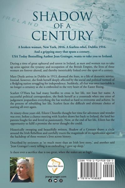 A broken woman, New York, 2016. A fearless rebel, Dublin 1916. And a gripping story that spans a century. During a time of great upheaval and unrest in Ireland, as men and women run to take up arms against the tyranny and occupation of the British Empire, the lives of three women are forever altered, and thereby inextricably linked over the span of a century. Mary Doyle arrives in Dublin in 1913, doomed she fears, to a life of domestic service. Instead, however, she finds herself deeply affected by the social and political turmoil of a fledgling nation struggling for independence. Suddenly, all that was once inevitable is no longer a certainty as she is embroiled in the very heart of the Easter Rising. Scarlett O'Hara has had many hurdles to cross in her life, not least her name. A successful political correspondent, she finds herself at a crossroads when one error of judgement jeopardises everything she has worked so hard to overcome and achieve. In the process of rebuilding her life, Scarlett faces the difficult and ultimate choice of starting all over again. At ninety-three years old, Eileen Chiarello thought her time for adventure and wonder was over, before a chance meeting with Scarlett draws her back to Ireland, the land her parents fought for and loved so passionately. Now, at the end of her life, Eileen has the opportunity to fulfil a promise she never thought she could. Historically sweeping and beautifully written, Shadow of a Century draws a circle around the Irish Rebellion and carefully traces the magnitude of its significance against the backdrop of three women's lives across history. Described by reviewers as 'so much more than an Irish love story, ' and another said 'Jean Grainger's story telling is so enthralling I gave up sleep.' Is there ever a sacrifice that is too great, when the stakes are so high?